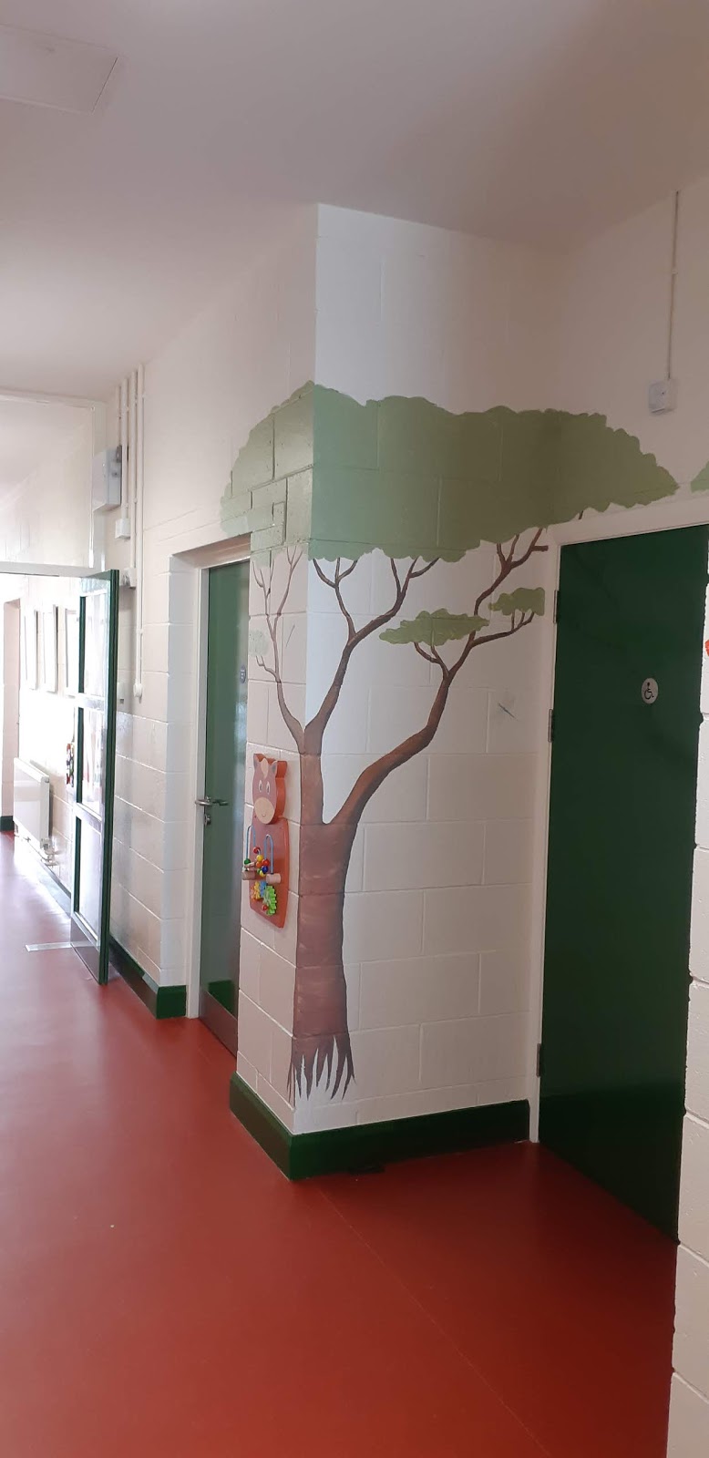 They were continuing on the great work of our previous months' Student Councils and were asked of ways to help improve our sensory corridor. They thought painting the walls was a great idea and loved the "Jungle" theme. Here they are with our fantastic artist Alison O Grady. She is doing a wonderful job painting the walls to create our Jungle themed corridor,